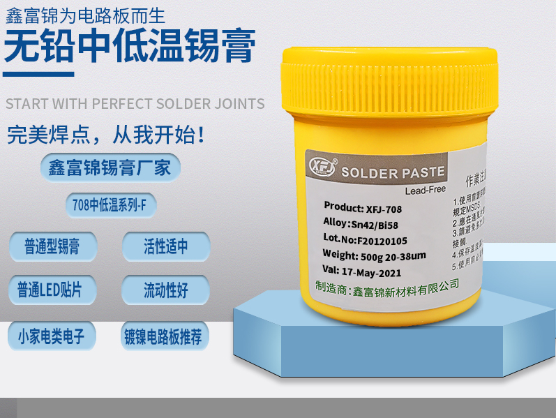 XFJ-708系列Sn42Bi58-F无铅低温锡膏