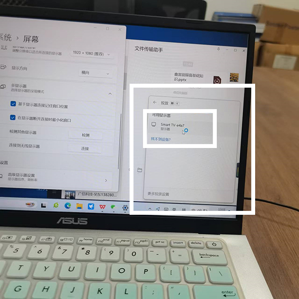 步骤五:选择下图中电脑上右下角弹出的可用显示器
